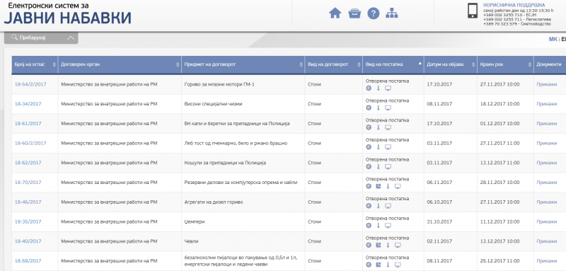 МВР бара најдобари понудувачи за набавка на нови чевли, џемпери, кошули, високи специјални чизми и капи и беретки за припадниците на полцијата. Повеќето од постапките за набавка на нова облека и обувки за полицијаците се актуелни до средината на декември до кога треба да се јават понудувачите. Според распишаните огласи на интернет-страницата за јавни набавки, МВР за оваа намена планира да потроши 99 милиони денри, при што најмногу пари, односно 35 милиони денари, без ДДВ, се предвидени за купување високи специјални чизми. Јавниот оглас за набавка на чевли е 25 млиони денари.