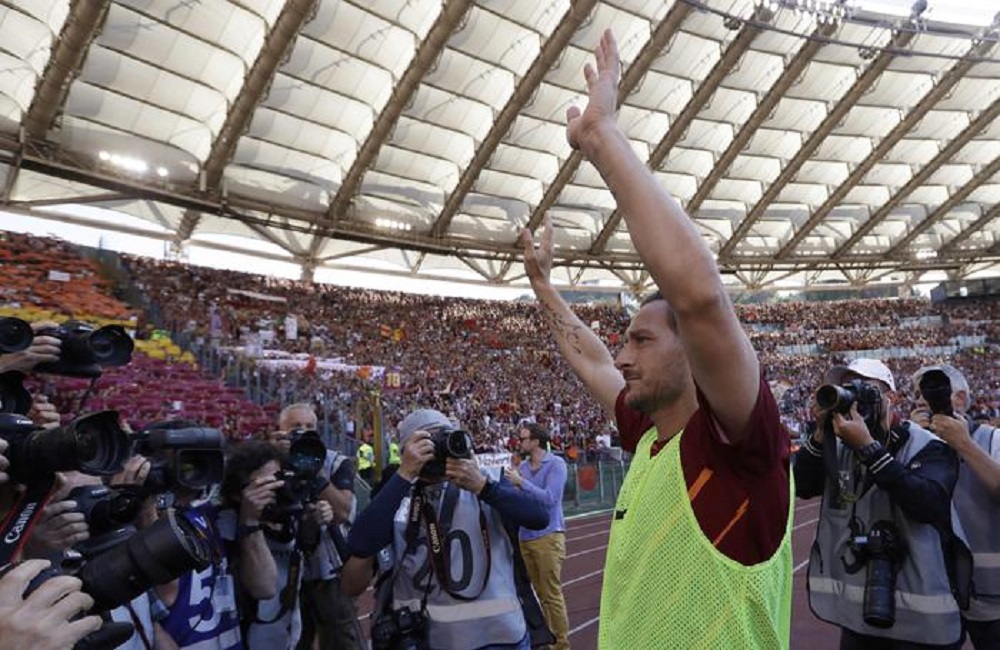 Фудбалерите на Рома на теренот истрчаа со маици посветени на легендарниот капитен: „25 сезони во еден дрес, 785 натпревари, 307 голови, светски шампион 2006. Франческо Тоти дел од фудбалската историја“.