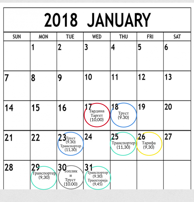 На 30 јануари се закажни три судења за предмети на СЈО. Почнува предметот на СЈО за набавката на екстралуксузниот „мерцедес“, „Тенк“, во кој првообвинета е ексминистерката Гордана Јанкулоска, а обвинети се и помошник-министерот за јавни набавки Ѓоко Поповски и експремиерот Никола Груевски. Истиот ден заедно со „Тенк“, треба да почне судењето за „Топлик“, во кое обвинети се поранешниот министер за транспорт и врски Миле Јанакиески и уште пет лица за незаконска продажба на парцела во скопско Сопиште. Истиот ден закажно е рочиште и за предметот „Труст“.
