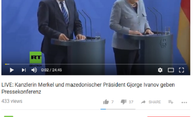 Каналот на „Раша тудеј“ на германски јазик на „Јутјуб“ ја пренесуваше прес-конференцијата на премиерот Зоран Заев и германската канцеларка Ангела Меркел што се одржа вчера во...