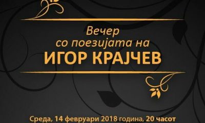 В среда, 14 февруари, во фоајето на Театарот „Јордан Х. К. -Џинот“ во Велес, со почеток во 20 часот, ќе се одржи вечер со поезијата на...