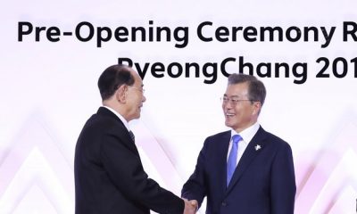 Претседателот на Јужна Кореја, Мун Jae-ин и формалниот претседател на Северна Кореја, Ким Јонг-нам, денеска се сретнаа и се ракуваа пред церемонијата на отворањето на Зимските...