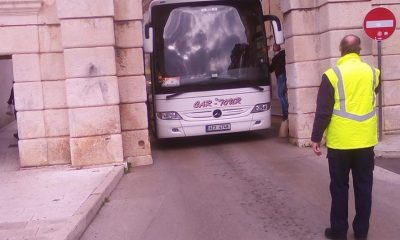 Чешки автобус се заглави во портата Фоша во центарот на Задар, каде што е забрането движење на автомобили. Поради широките ретровизори, автобусот, кој по грешка завршил...