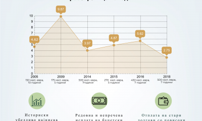 Република Македонија на меѓународниот пазар на капитал денес издаде еврообврзница на износ од 500 милиони евра со рок на достасување од 7 години и каматна стапка од...