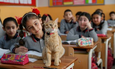 Земајќи ги предвид неконвенционалните методи за подучување, учителката Озлем Пинар Иваску од осново училиште во турскиот град Измир, ѝ дозволи на мачката Томби да присуствува на...