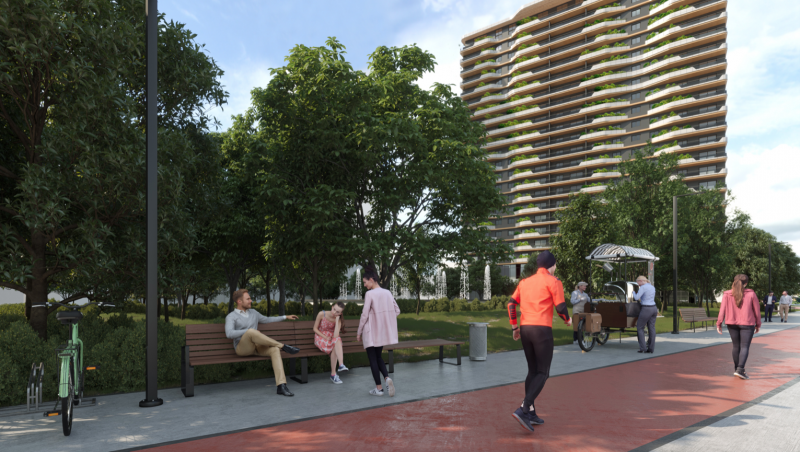 Сакаме да нагласиме дека во рамките на ДУП Ц08 предвидена е и јавна површина од вкупно 7.500 м2 или приближно површина колку Плоштад Македонија во центарот на Скопје. Нашата визија за овој јавен простор е да се уреди на современ начин, налик на урбаните паркови во светските метрополи, како на пример оној на „Porta Nuova“ во Милано, а за кое идејно решение ќе предложиме да биде распишан јавен конкурс во соработка со Општина Центар. МГ ФЕШН ДОО Скопје како општествено одговорна компанија, на свој трошок, ќе ги обесштети сите жители на Ново Маало кои имаат имот на овој простор, без разлика што на истиот не е предвидена никаква изградба на градежен објект, и тоа на ист начин и во ист сооднос како и на жителите на Ново Маало на чии имот е предвидена изградба на објекти.