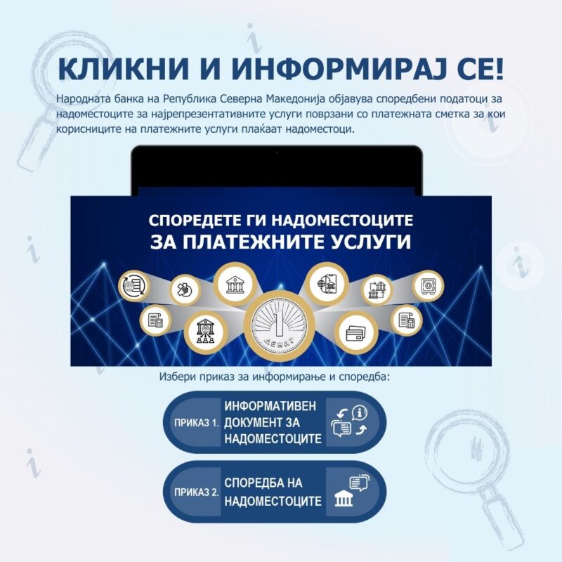 За прв пат граѓаните можат на брз и едноставен начин да направат споредба на надоместоците за платежните услуги кај банките преку веб – страницата на Народната банка на Република Северна Македонија, преку користење на алатката „Споредба на надоместоците помеѓу давателите на платежните услуги“.