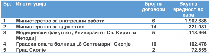 Повеќе од две третини од вредноста на договорите отпаѓа на пет фирми. Тендери за итна набавка добиле вкупно 81 фирма, но 71 отсто од вредноста им припаѓа само на пет фирми.