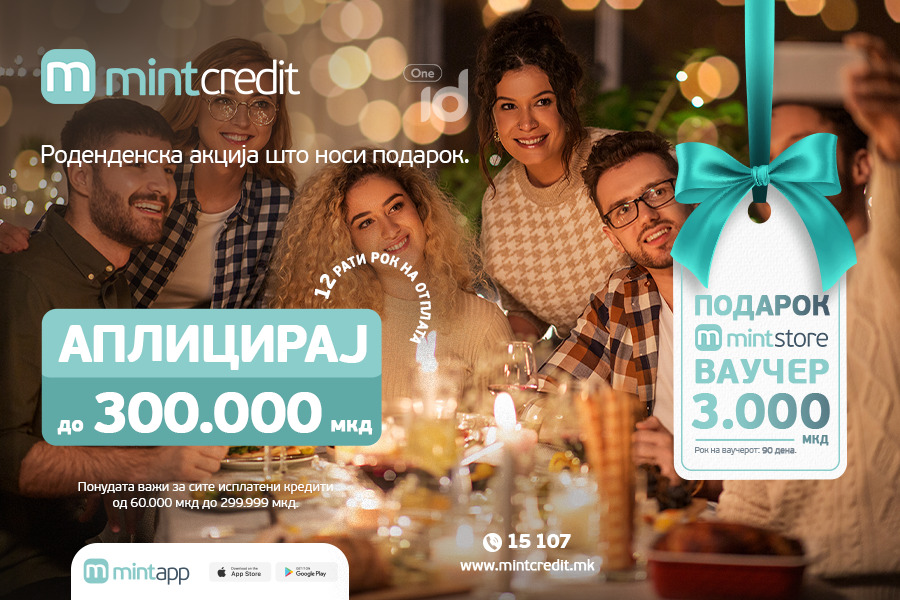 Време е за нови можности и убави изненадувања, затоа што Минт Кредит слави роденден, а кога се слави роденден – подароците се задолжителни. Овој пат, Минт Кредит те изненадува со специјален роденденски Mint Store ваучер покрај брзата финансиска поддршка