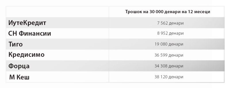Според спроведеното истражување во октомври и ноември и анализата која ги опфаќа сите услови што ги нудат шесте најпопуларни финансиски друштва на нашиот пазар, вкупните трошоци за процесирање на апликација за кредит, за предвремена отплата или, пак, доцнење, како и потребните гаранции кои ги бараат некои од нив, се само дел од причините за разликите во исплатливоста на позајмицата.