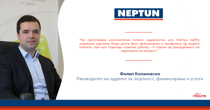 Филип Копановски, раководител на одделот за лојалност, финансирање и услуги во Нептун Македонија вели дека Нептун haPPy картичката за лојалност овозможува низа предности и бенефиции за сите нивни членови. Крајната цел им се задоволни купувачи и врвно купувачко искуство.