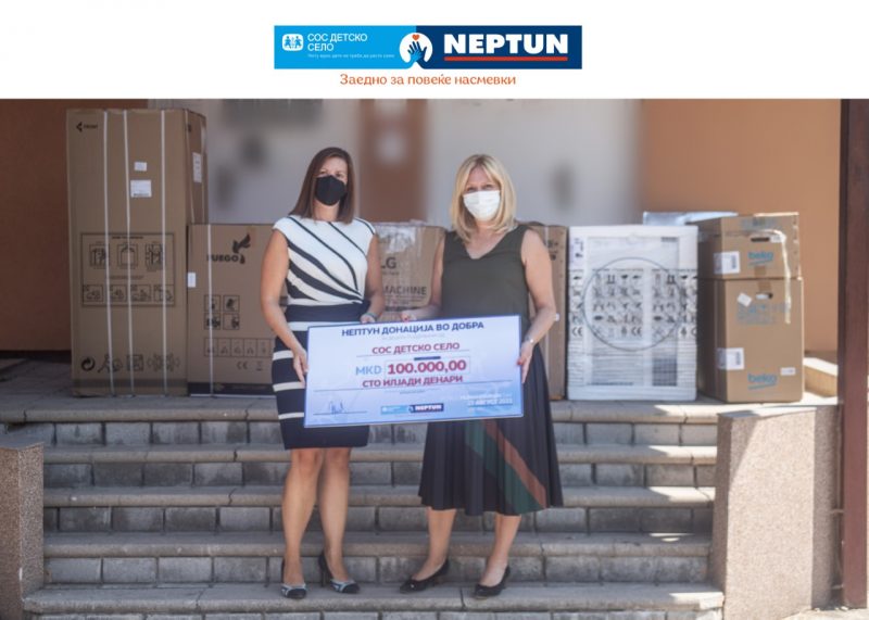 Како дел од стратешко партнерство помеѓу СОС Детско село и НЕПТУН Македонија „Заедно за повеќе насмевки“, почнувајќи од 03.08.2021 НЕПТУН организираше хуманитарна кампања “Заедно донираме повеќе” која симболично заврши на светскиот ден на ХУМАНОСТА 19.08.2021. Со кампањата беа опфатени повеќе производи од сите брендови што се продаваат во мрежата од 25 продажни места во 21 град во Македонија, при што за секој купен производ вклучен во хуманитараната кампања, НЕПТУН МАКЕДОНИЈА донираше 1% од нето вредноста на продадените производи во тој период. Преку хуманитарната акција, компанијата упати повик до своите купувачи да се вклучат во истата, со транспарентна комуникација во текот на времетраењето на кампањата.