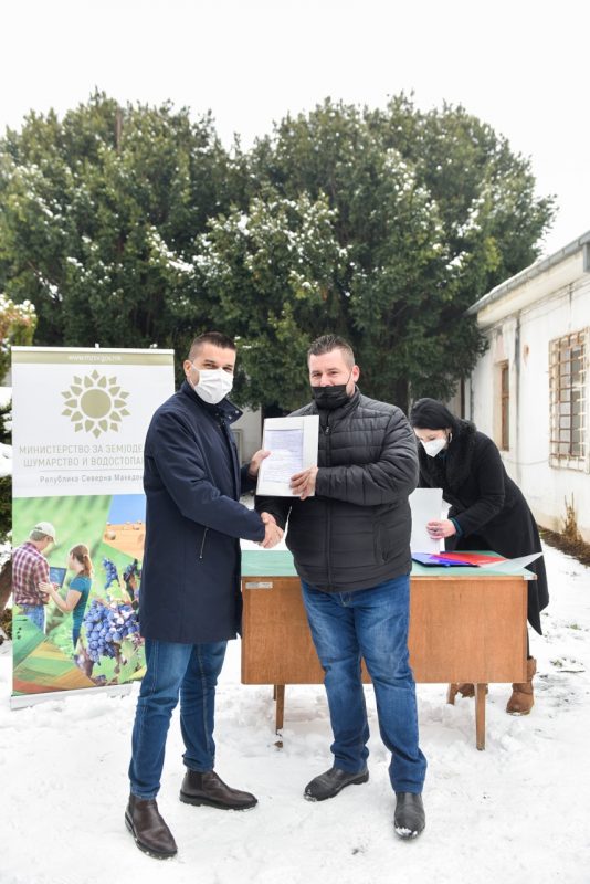 Министерот за земјоделство, шумарство и водостопанство, Љупчо Николовски, заедно со заменик-министерот Трајан Димковски, денеска во Прилеп ги додели првите договори за закуп на земјоделско земјиште до 3 хектари за последните два јавни повика.