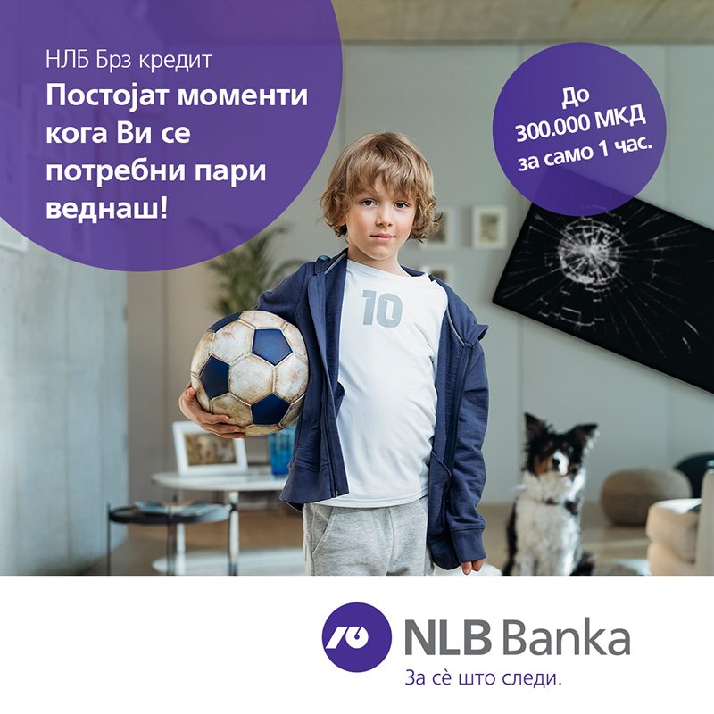 НЛБ брзиот кредит е со максимален износ до 300.000 денари и е достапен за сите клиенти што својата плата или пензија ја примаат преку НЛБ банка. Овој кредитен продукт може да се добие во сите експозитури на НЛБ банка, без потреба од дополнителна документација, само со приложување документ за лична идентификација.