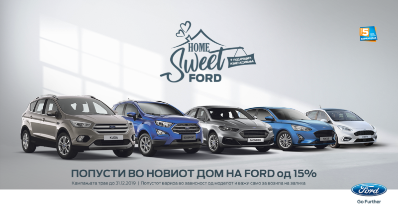 Истовремено, по повод на отворањето на новиот објект и 25-годишното присуство на пазарот, компанијата ја најави и својата најнова кампања Home Sweet Ford, која овозможува големи попусти и подароци за сите потрошувачи, а трае сѐ до крајот на 2019 година.