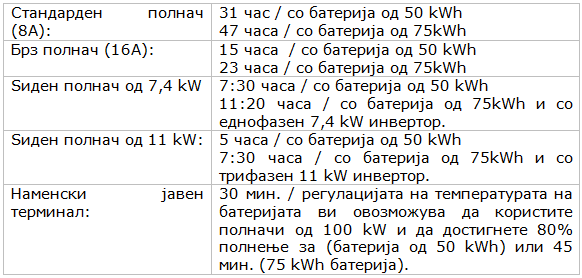Достапни се два вида на инвертори во возилото, за да одговараат на сите намени и сите решенија за полнење на клиентите, со еднофазен полнач од 7,4 kW како стандарден и опционален трофазен инвертор од 11 kW.