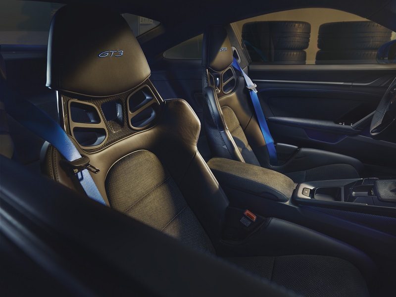 Особено за GT моделите на Porsche, клиентите се повеќе бараат високо ниво на персонализација во изборот на опремата. Поради оваа причина, опсегот на Porsche Exclusive Manufaktur достапен и за новиот 911 GT3 е дополнет со специфични опции за GT3, како што е лесен покрив направен од јаглеродни влакна. Дополнителните елементи вклучуваат капаци на надворешните ретровизори изработени од карбон, затемнети LED Matrix фарови и задни светла со ексклузивен дизајн кој се протега по целата должина на задниот дел. Алуминиумските фелни во Guards Red или Shark Blue боја особено ја зголемуваат персонализацијата на возилото. Во внатрешноста, деталите на опремата, како што се бројачот на вртежи и стоперката на Sport Chrono, сигурносните појаси и останатите елементи во внатрешноста, ги нагласуваат деталите на каросеријата, или бојата по избор на корисникот.