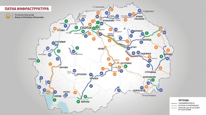 „Со почетокот на градежната сезона почнуваме со забрзана изградба и рехабилитација на најголем дел од патната мрежа во вкупна вредност од 1 милијарда и 270 милиони евра. Станува збор за големи инвестиции во изградбата на нови патишта, како и реконструкција на постојните во вкупна должина од над 770 километри. Оваа година почнуваме со реализација на нови проекти за изградба, рехабилитација и реконструкција на 43 патни правци, а засилено ќе продолжиме со изградба и реконструкција на веќе започнатите 27 патни правци. Продолжуваме да ја градиме Република Македонија и да ги поврзуваме граѓаните со квалитетни, сигурни и безбедни патишта“, соопшти премиерот Заев во своето обраќање и додаде дека добрата и безбедна патна инфраструктура е главен предуслов за привлекување домашни и странски инвестиции и за локален економски развој.