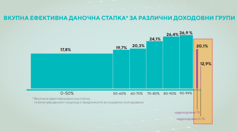 Оттаму истакнуваат дека најдоховните 1% граѓани имаат вкупна ефективна даночна стапка која е пониска од онаа на останатите.