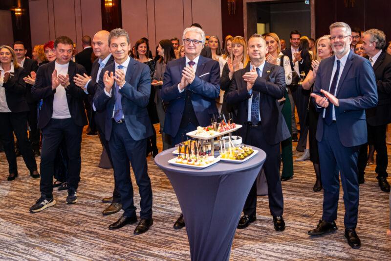 По завршувањето на официјалниот дел беше организиран свечен јубилеен прием, на кој присуствуваа претставници од институциите, дипломатскиот кор, меѓународните организации и од компаниите членки. Настанот уште еднаш ја потврди улогата на AmCham како платформа која ги поврзува јавниот и приватниот сектор, која поттикнува партнерства и која иницира структурни реформи.
