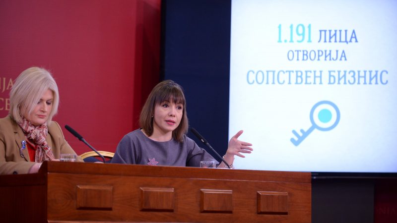 „Преку учество во програмата ‘Самовработување’, сопствен бизнис отворија 1191 лица, мерката Субвенционирање на плати овозможи да се вработат 759 лица, а преку учество во мерката Вработување и раст на правни субјекти беа вработени 347 лица. Во рамките на спроведувањето на Законот за вработување на инвалидни лица се доделуваа финансиски средства со кои се поттикнува вработувањето на инвалидните лица, при што беа доделени средства за вработување на 209 лица“, истакна Јовановска.
