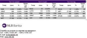 На прво место по раст на цената се најде акцијата на Арчелормитал Скопје (ХРМ) со 53,85 отсто пораст и истргувани 105 лотови по цена од 20 денари за акција, а на спротивната страна се најде акцијата на РЖ Услуги со пад на вредноста на акцијата од 1,49% со истргувани 385 лотови по просечна цена од 97,52 денари.