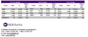 Најголем раст на вредноста од 3,04% со истргувани 25 акции по просечна цена од 948,00 денари забележа акцијата на Топлификација АД Скопје, а по неа се рангираше акцијата на Макпетрол АД Скопје со раст од 0,73%, и просечна цена од 27.700,00 денари.