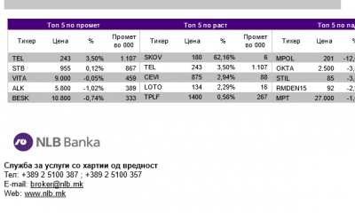 Крајот на оваа скратена трговска недела на Македонската берза заврши со пораст на идексот МБИ- 10 од солидни 1,18% при што вредноста на индексот достигна 2.285,21...