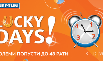 Lucky days во „Нептун“! Денови на среќни купувачи од 9 до 12 јули 2018 година со супер понуди, големи попусти и шопинг до 48 рати со...