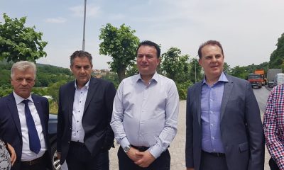 Министерот за транспорт и врски, Горан Сугарески, заедно со заменик-министерот за транспорт и врски, Садик Беќири, директорот на ЈП за државни патишта, Зоран Китанов, и директорот...