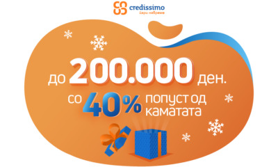 Credissimo нуди бомбастичен попуст за крајот на годината. Credissimo нуди бомбастичен попуст за крајот на годината. Во пресрет на најубавиот и највеселиот период од годината, секој клиент...