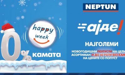 HAPPY WEEK акција во Нептун со големи новогодишни попусти на целиот асортиман и до 60 рати БЕЗ камата на цените со попуст! Само од 24-31 декември,...