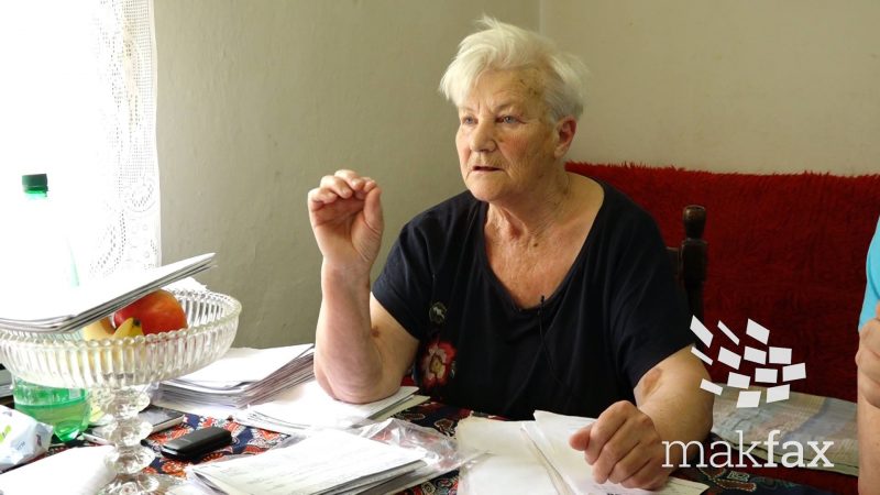 При посетата на екипата на „Макфакс“ посведочивме дека ова, сега петчлено семејство, во кое двајцата возрасни, нејзиниот син и снаата, се невработени и имаат две малолетни деца, а Македонка прима пензија од 6.000 денари, живеат во еднособен стан, во кој тоните хартија од судските пресуди се повеќе отколку што во нивниот дом има мебел и играчки за децата.