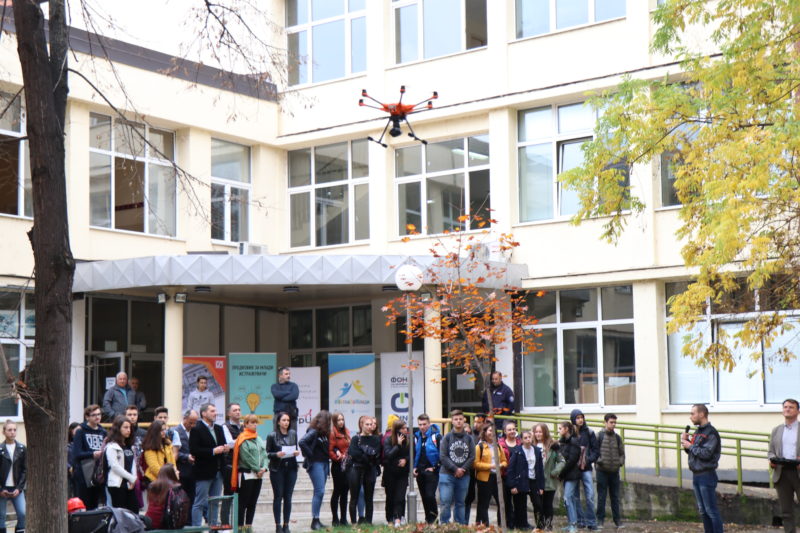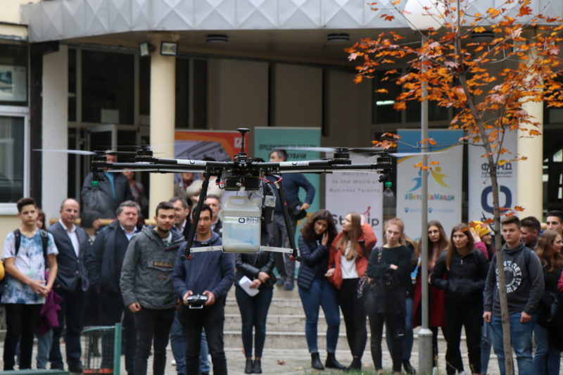Резултатите од проектот за изработка на дрон со голема носивост за прскање тешкодостапни и инфицирани шуми на тимот ученици од скопската гимназија „Георги Димитров“ и проектот на компанијата „Талент бизнис инкубатор Степ-ап“, со иновативниот проект поддржан од Фондот за „Употреба на дронови за инспекција и надзор на далноводи и дистрибутивната мрежа на струја“ беа претставени пред учениците.