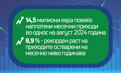 За 14,5 милиони евра е зголемена наплатата на приходи во август во царината во споредба со истиот месец минатата година, што претставува рекорден раст на приходите...