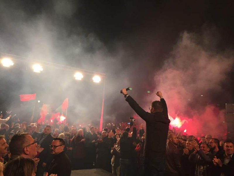Претседателот на ВМРО-ДПМНЕ пред присутните потенцираше дека на овие избори се носи одлука дали ќе продолжиме да живееме во понижена, омаловажена и уништена држава каква што сега ја направила СДСМ.