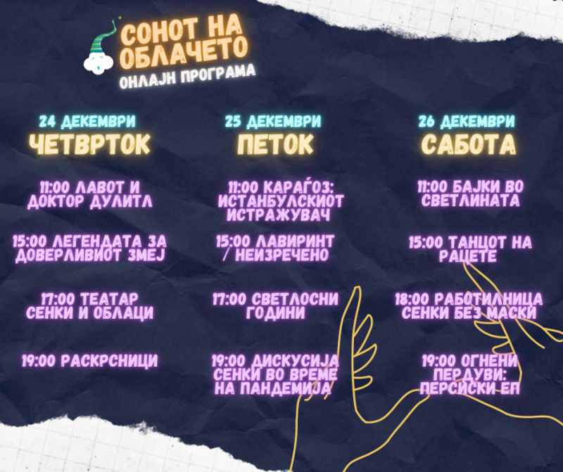 Театарската трупа „Сенки и облаци“ ќе го одржи осмото издание на Интернационалниот детски фестивал на театар на сенки „Сонот на облачето“, овој пат во онлајн-формат.