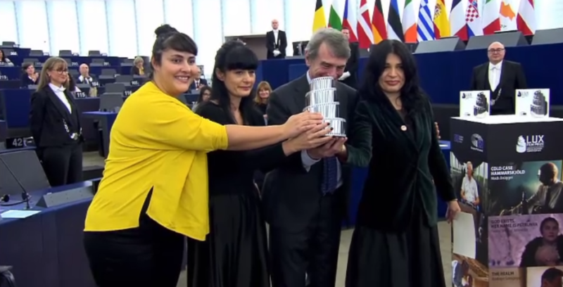 Евроамбасадорот Самуел Жбогар свечено ѝ ја додели наградата „Лукс“ на режисерката Теона Стругар-Митевска. Оваа престижна филмска награда за 2019 година Европскиот парламент ја додели за филмот „Господ постои, името ѝ е Петрунија“.