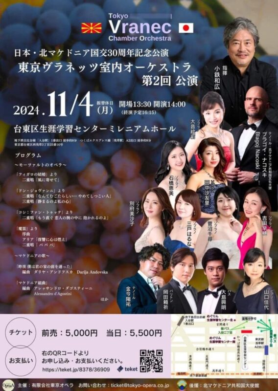 Вечерва, во Tokyo Opera е светската премиера на „Сношти минав“ за тенор, гудачки оркестар и пијано од Дарија Андовска.