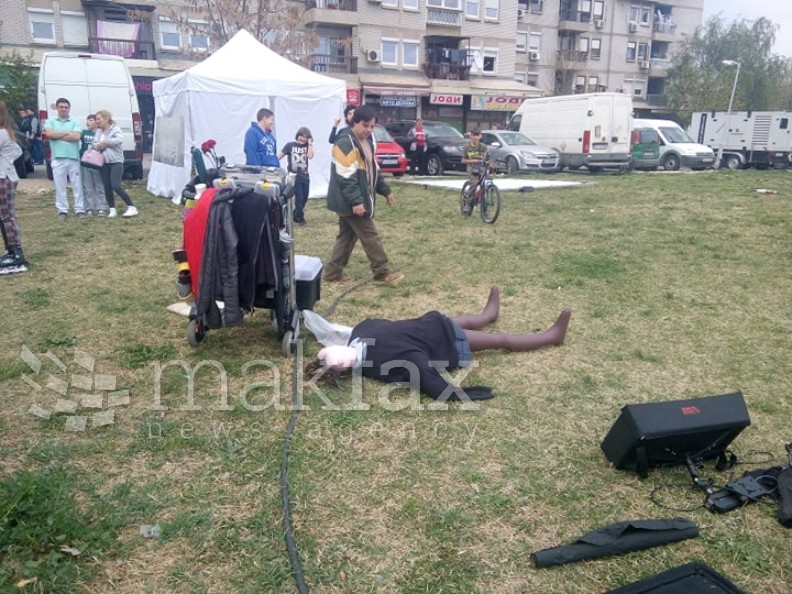 Денешната сцена која беше најавена како една од посложените се подготвуваше цели 5 часа. Инаку, филмот е во својата четврта недела од снимањето, кое ќе трае пет недели на повеќе од 20 скопски локации.