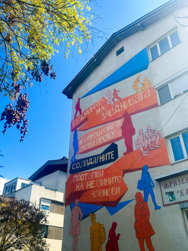 Оваа порака од Корета Скот Кинг (авторка, активистка и лидерка на граѓански права) се упатува кон многуте заедници што го оформуваат разновидниот карактер на општеството, а за да опстанат, тие зависат во голема мера од солидарните и добронамерни постапки токму од нејзините членови. Затоа, неслучајно оваа мисла е носечката порака на првиот мурал, таа служи како потсетник дека токму членовите се одговорни за градењето на меѓусебно разбирање, толеранција и заеднички борби за создавање подобри и поздрави услови на живеење овозможувајќи поддршка и слободно заедничко творештво – не само во културата и уметноста туку и пошироко во рамките на општеството во кое живееме.