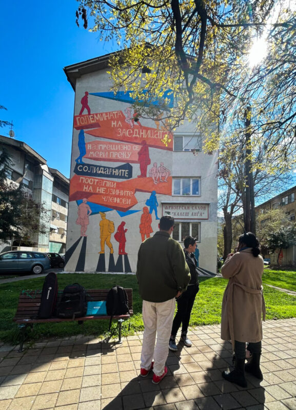 Идејата зад овој мурал не беше само да се обнови фасадата на зградата ниту, пак, во фокусот беше да се претстави само визуелно решение, туку да се создаде потсетник за важноста на солидарноста во општеството. Играта со архитектурата е замислена да оствари директна комуникација со самите случајни минувачи во секојдневието – оние што се упатени кон (или заминуваат од) работа, училиште, факултет, пазарување, прошетки. Mинувачи пронајдени во самиот визуелен изглед на муралот што ја носи главната порака, која гласи: „Големината на заедницата најпрецизно се мери преку солидарните постапки на нејзините членови“.