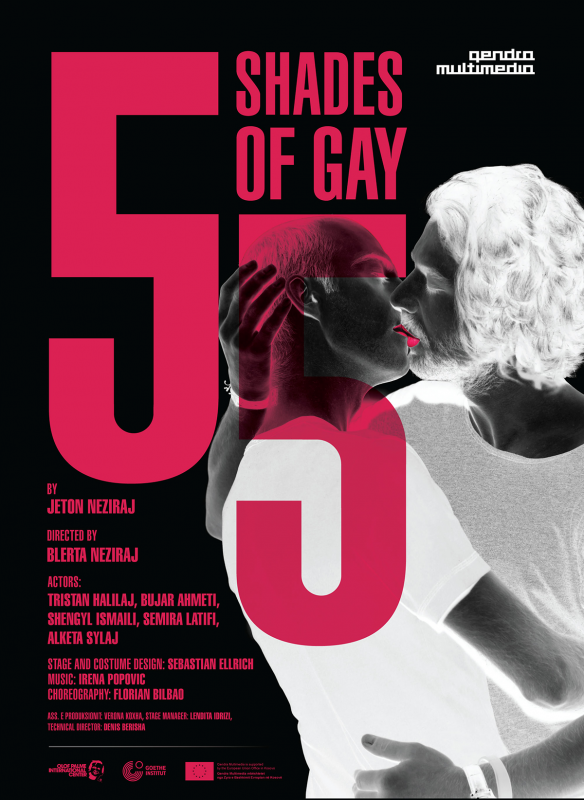 Косовскиот театар „Ќендра мултимедија“ во рамки на 11. издание на фестивалот „Лица без маски“ на 14 април, на малата сцена на МНТ, со почеток од 20 часот, ќе ја изведе претставата „55 нијанси геј“. Автор на претставата е Јетон Незирај, а режијата е на Блерта Незирај.