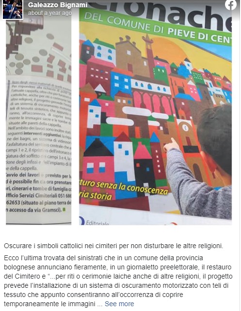 Во 2019 година гробиштата во градот Болоња отидоа уште подалеку инсталирајќи моторизирани завеси за да го блокираат погледот кон христијанските симболи за време на услугите за другите верски заедници.