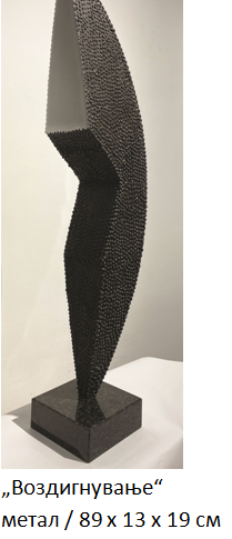 Од пластичност до фрагменти, визуелни сензации на разни медиуми, скулптурите доведуваат до поместување на уметничките дисциплини, а материјалот го одредува обликот. На оваа изложба доминираат фигуративната скулптура и геометриската апстракција. Структуралните моменти, пак, прават јасни разлики кај оние скулптури со вајарска природа и оптичка чувствителност кај некои од скулптурите што припаѓаат на некој простор кој продолжува во некој друг. Тие го ослободуваат вајарството од претставувањето и го утврдуваат како слободна форма. Доминираат творби од метал, дрво, бронза, пластика, но и објекти што се доближуваат до цртеж, инсталација“.