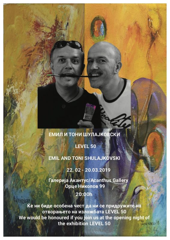 Во галеријата „Акантус“ во Скопје, на 22 февруари (петок), со почеток во 20:00 часот ќе биде отворена изложбата на слики Level 50 на ликовните уметници Тони и Емил Шулајковски.