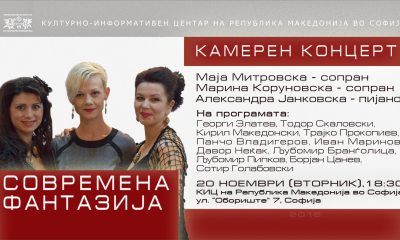 Во салонот на КИЦ на РМ во Софија, со почеток од 18:30 часот, ќе се одржи концертот со наслов „Современа фантазија“. Певиците Маја Митровска и Марина...