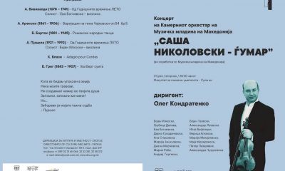 Свеченото затворање на „Скопско лето“ 2018 ќе се одржи вечерва со концерт на Камерниот оркестар на музичка младина на Македонија „Саша Николовски – Ѓумар“ со диригент...