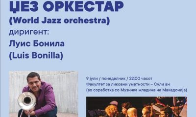 Младинскиот светски џез-оркестар (JM World Jazz Orchestra), предводен од американскиот диригент Луис Бонила, вечер ќе гостува на Скопско лето со концерт во Сули ан од 22...