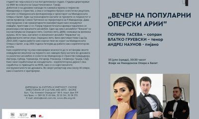 Вечерва во рамките на Скопско лето ќе се одржи Вечер на популарни оперски арии од Верди, Штраус, Пучини, Доницети, Кардиљо, Сартори и други, со Полина Тасева...